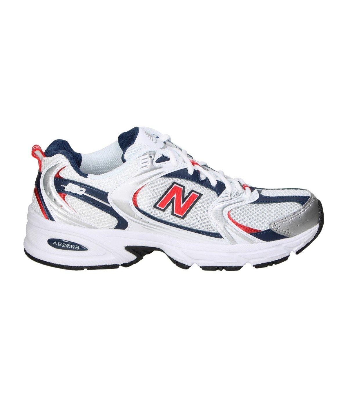 Zapatillas New Balance de color blanco con toques en azul y rojo